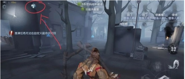 刚开始的时候,窥伺天赋也有找人的作用,这样比较好找密码机,但其实耳鸣是可以当窥伺使用的,而且效果很好。当然,需要你有一定的经验并且对距离比较敏感,比如说,出现耳鸣图案时,你和某个密码机正好差不多是36米,说明这里有人解码。