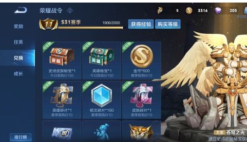 每赛季在战令界面中,可以使用战令币兑换金币,每次可兑换600金币,总共可以兑换10次,总计6000金币。