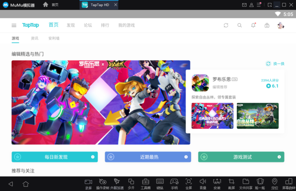 TapTap模拟器最新版,其实是TapTap与MuMu模拟器的合作版,就是在下载TapTap模拟器后,既能使用TapTap模拟器的内容,也可以使用MuMu模拟器的内容。同时,TapTap作为一个游戏推荐平台,每天都会编辑测评一些好游戏,因此也吸引了很多的高质量玩家,适合喜欢互动交流的小伙伴。