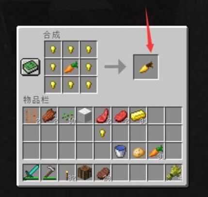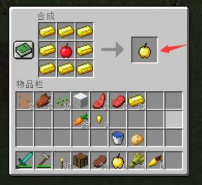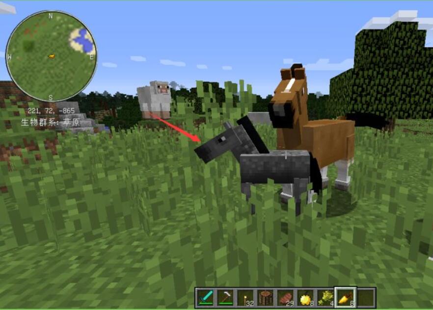 然后我们制作至少2个金胡萝卜或者金苹果(推荐金胡萝卜,制作成本低),找到马,对着它们(必须先驯服它们)分别各喂一个金胡萝卜,然后它们都冒出红色的爱心,等一会就生出小马了。