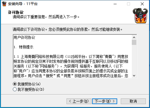 点击下一步后,阅读用户许可协议并确认无疑问,选择“我接受协议”,按步骤继续安装。