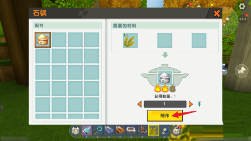 第二步:制作【石锅】,将石锅放在篝火上方。
