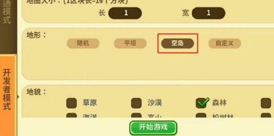3、在页面左下角找到“开发者模式”,在普通模式里是没有空岛地形的。