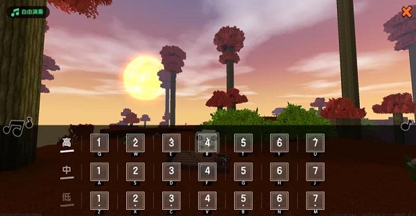 4、因为部分乐器受到音域限制,所以会出现一些音符没办法点击发出声音的情况。比如说鼓这种乐器,就只支持中音域里的“1-5”音,这一点冒险家要注意哟!