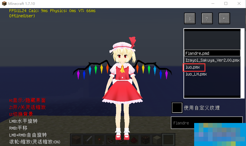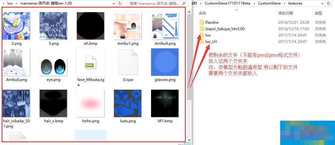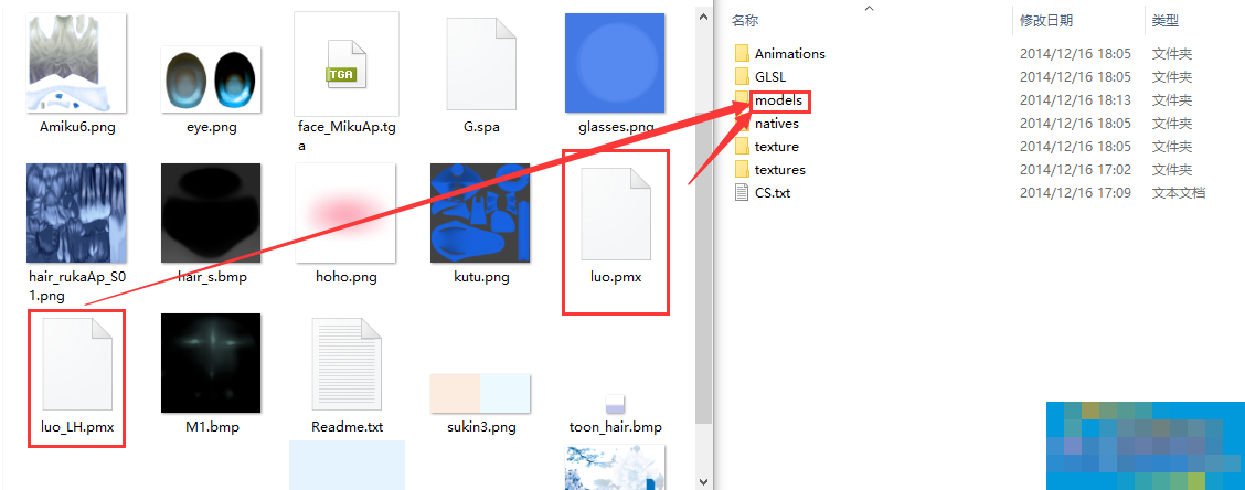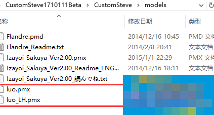 例如:我上面放入models里面的是luo.pmx和luo_LH.pmx