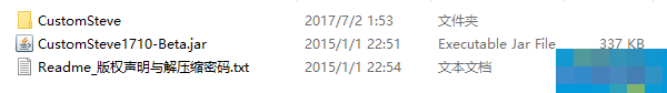 然后下载该mod 此处我以CustomSteve1710111Beta(1.7.10 1.1.1 Beta版)为例