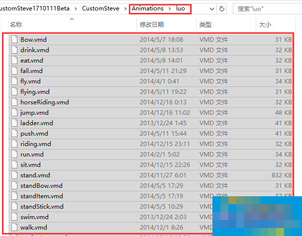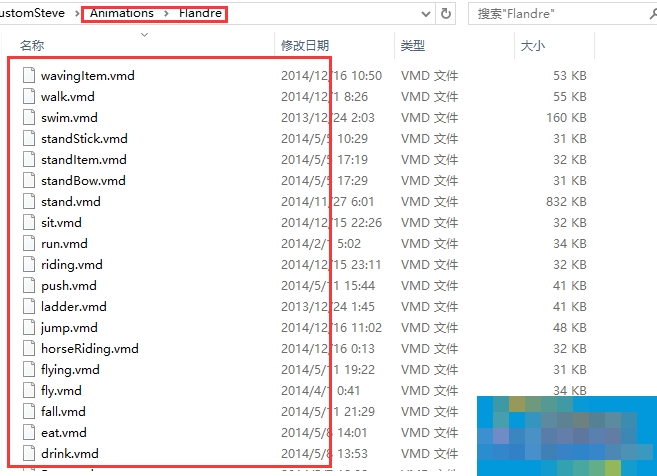 Animations内创建同pmd/pmx格式文件相同名称的文件夹