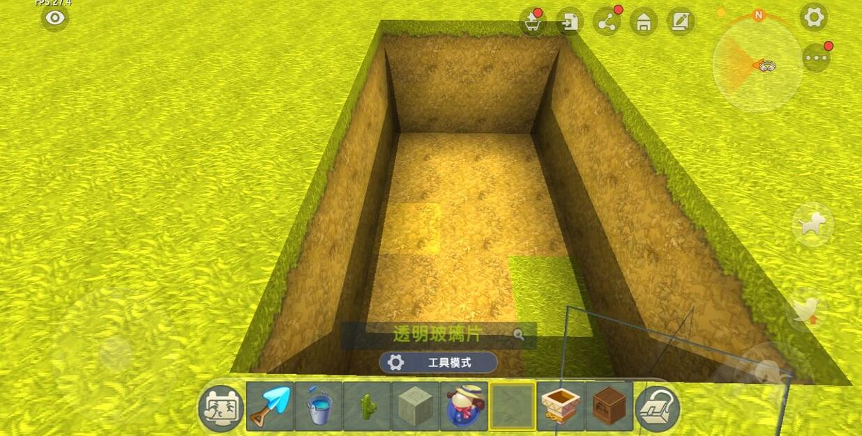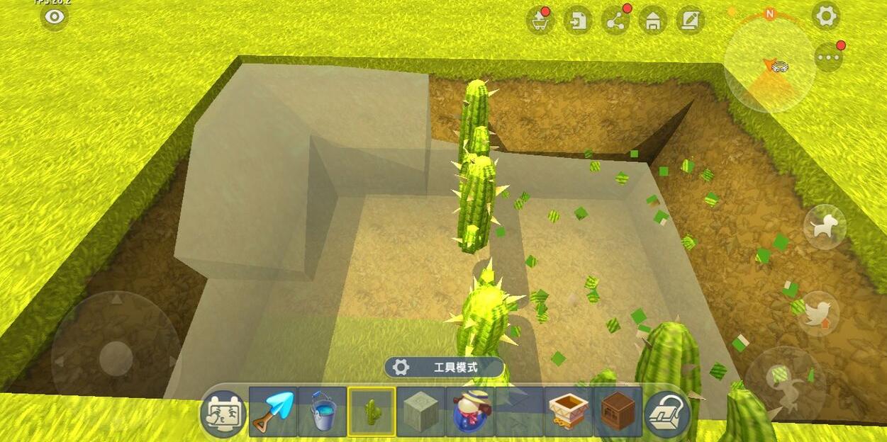 4、在仙人掌上方放上方块,在方块顶端放置稻草人,再用玻璃片或者玻璃会盖住稻草人,用来防御远程攻击。
