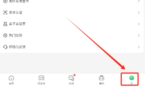 打开手机上的4399游戏盒,进入界面后点击右下角的“我”的选项。