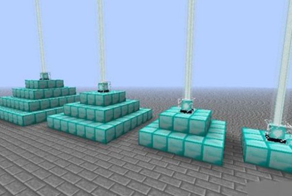 要让信标解锁全部的功能的“金字塔”的基台必须要有四层:最底下一层是9×9的,然后一层7×7。接着5×5,随后3×3。最顶端放上信标,这就算是最完美的信标金字塔了。