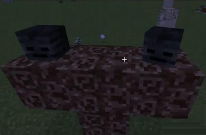 接着,拿出凋零骷髅头颅,并且在最上方三块灵魂沙上各摆放一个。