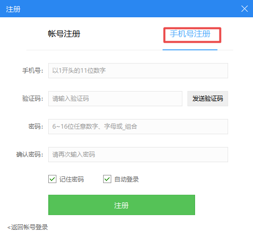 在【手机号注册】界面当中,输入【手机号】、【验证码】、【密码】以及【确认密码】,最后点击【注册】按钮即可注册快吧游戏账号了。账号注册成功后,会自动进行登录。