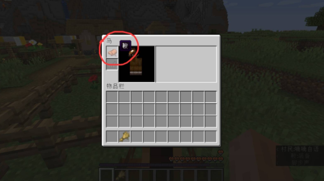 3、装备马鞍:驯服成功后,打开背包,将马鞍安装到马的身上。