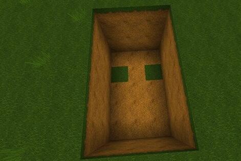 1、首先先在地面挖一个长4格宽3格深2格的坑;
