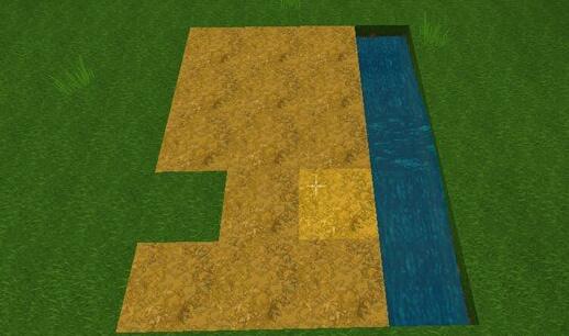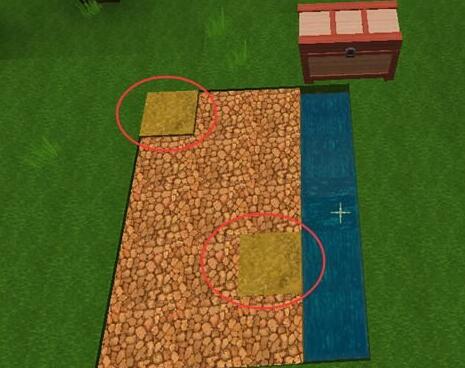 5、用锄头锄地,记住不要去锄感应方块上方的那块土,然后多留一块不锄,消除戒心,最后再边上放一个储物箱,储物箱中放个锄头和一些种子、麦子之类的,伪装成真正有使用的麦田。