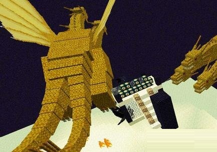 还有就是末影之地的终极BOSS,已经不是末影龙了,而是三头黄金巨龙。战斗力和哥斯拉差不多,都是十分恐怖的存在。
