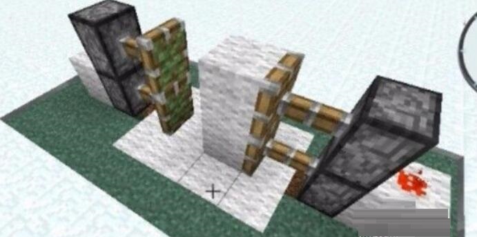 最后,即可创建活塞门,如图所示继续放置粘性活塞,同时在一侧的粘性活塞表面放置白色方块,即可完成创建。