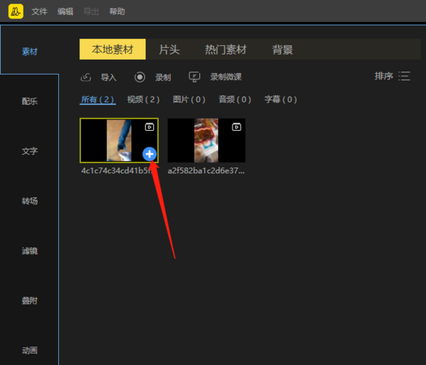 为视频添加声音有两种,第一种是音乐或者是已经编辑好的声音,只需要进入视频编辑界面,点击左上方双击导入文件,选择电脑中的音乐,然后点击打开,然后将声音拖到下方的音频当中即可。第二种就是录制的自己原声,点击界面中间的配音按键,