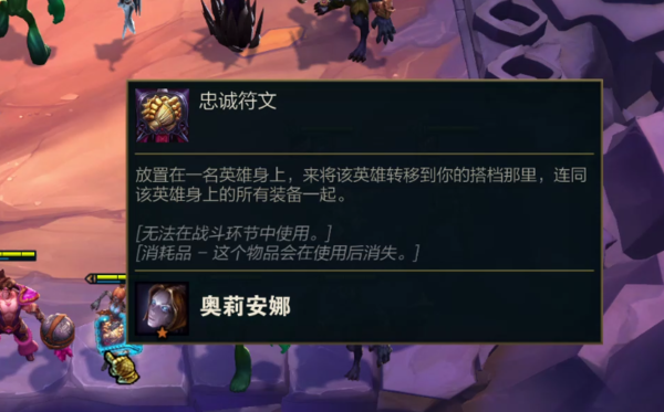1、在获得“忠诚符文”装备后,给想要传送的英雄装备上忠诚符文,就可以把选中英雄传送至队友的棋盘中。如这名英雄身上放置了其他装备,英雄连同身上的装备就会一起送到队友棋盘里去。