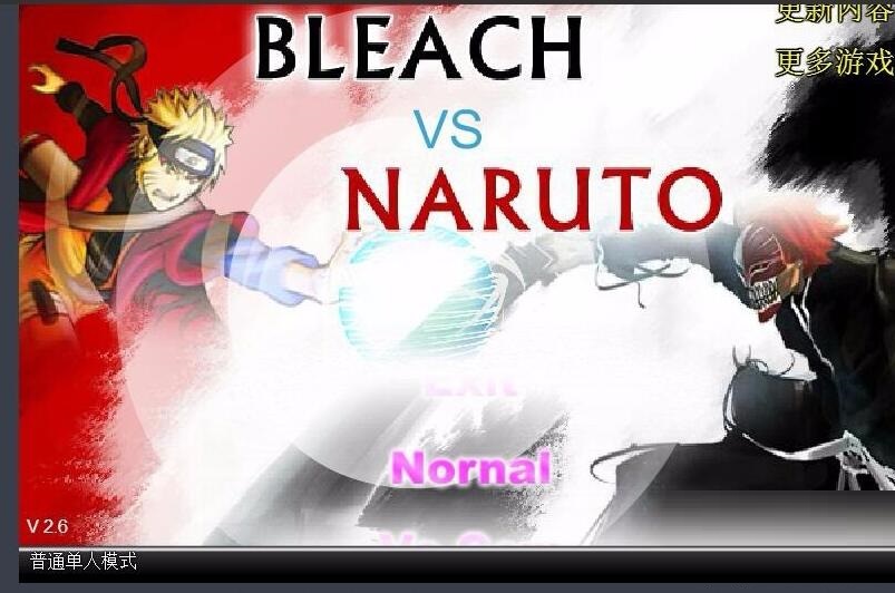 进入死神vs火影游戏界面,可以看到屏幕左下方显示有“普通单人模式”选项
