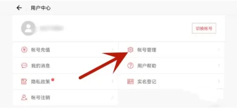 3、在用户中心页面中,点击账号管理,进入账号管理界面。