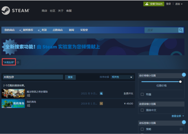 以上,就是小编为大家总结的关于木筏生存游戏下载方法及其在steam平台上搜索的方法介绍了。