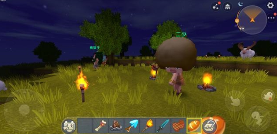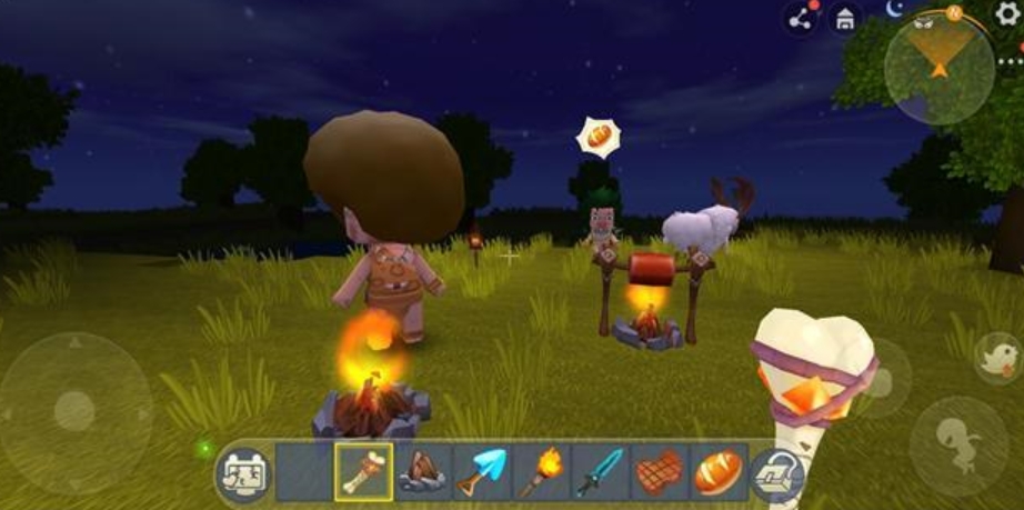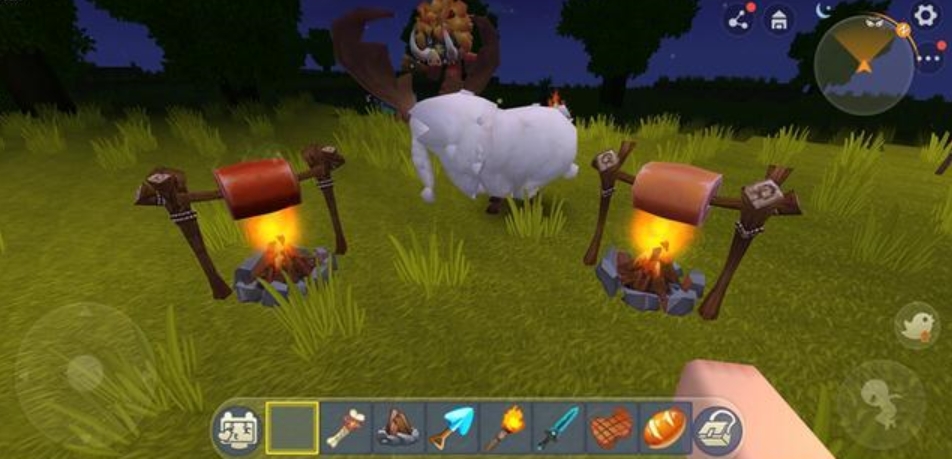 第一步:将游戏时间调整成夜晚,然后创建一个有草地的新世界,准备所需的道具,包括巫术骨锤、床、篝火(或点火器)、生肉以及可能还需要的小麦面包或面条。