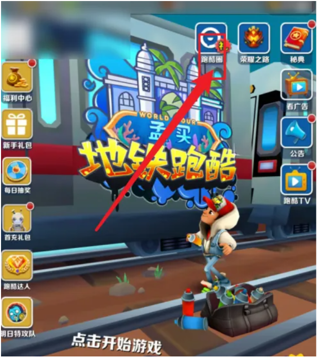 1、打开游戏,点击【跑酷圈】。