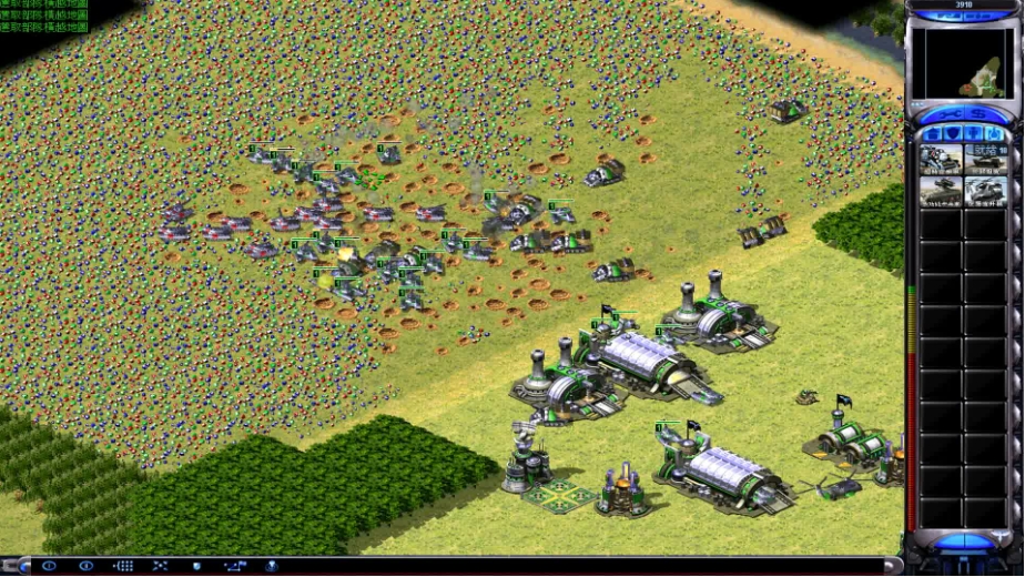注意,单机模式中在地图编辑器中可以对地图自定义,添加新的建筑和单位等。保存地图并开始游戏即可享受红警战网地图的单机体验