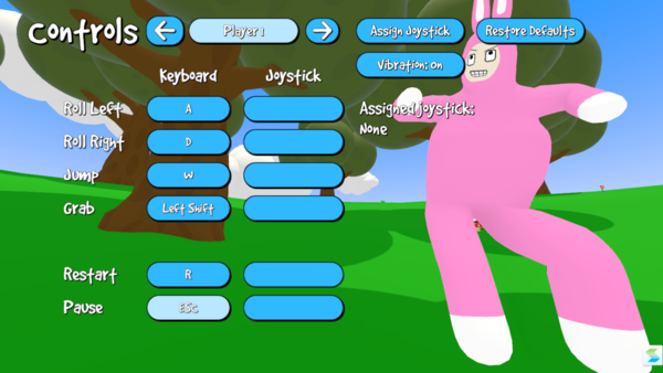 2、这个页面中我们就可以按照需求更改控制的键位了。Keyboard下方的按钮是以键盘为操控方式的键位选择,Joystick下方的按钮是修改游戏摇杆相关键位的选择项目。