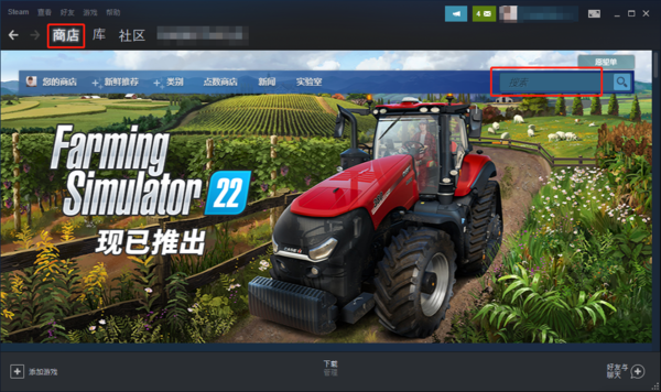 1、首先电脑中要安装Steam,安装并登录后,在界面上方找到“商店”并单击。在右上方的搜索框中输入Super?Bunny?Man,按下回车键或点击后面的搜索按钮。