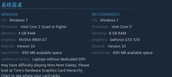 从给出的配置信息来看,这款《浓浓宇宙汤》是不支持XP系统的,此外,对处理器的要求也是相当高,最低的要求竟然都是四核处理器,可能是因为游戏里会涉及到很多建造方面的东东,此外还有多人联机以及本地分屏等内容。这些对处理器和内存的要求应该是颇高的。