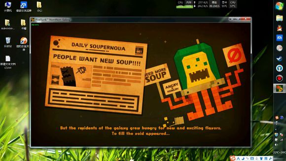 《浓浓宇宙汤(Nom Nom Galaxy)》原名为PixelJunk Inc(像素垃圾系列),本游戏是原系列更名后的第一作。庞大的外星球也让玩家能尽情的探索,不过还是要注意有可能会被怪物杀死的哦,而收集到的各种材料也能制作成不同的工具或食物什么的来使用。游戏没有什么目的,只是让玩家自由的探险。《浓浓宇宙汤》是一款四人合作建立宇宙汤工厂的游戏。玩家可以改造星球,收集资源,在银河系建造最好的浓汤帝国。