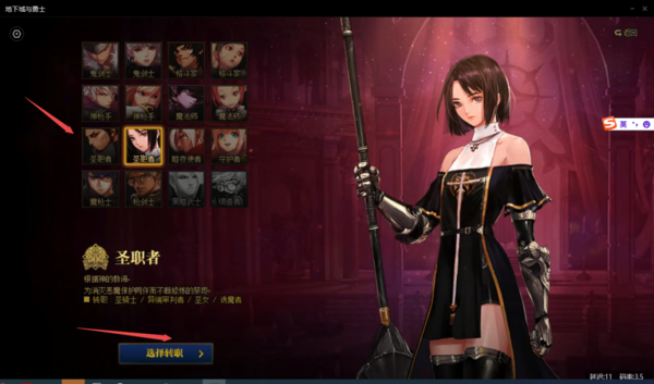 7、接着选择角色,点击界面底部的【选择转职】按钮。