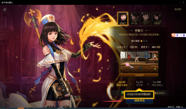 8、然后点击【创建角色】按钮,回到游戏界面当中后,再点击【游戏开始】按钮。