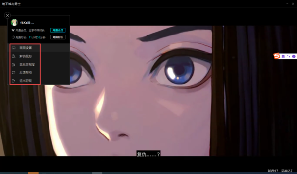 9、而在地下城与勇士游戏界面的左上角,有一个小齿轮的图标,点击它,我们可以对游戏进行【画面设置】、【鼠标灵敏度】以及【退出游戏】进行设置。全部设置好以后,我们便可以使用腾讯START云游戏来畅玩DNF地下城与勇士游戏了。