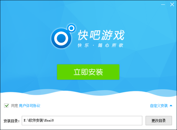 快吧游戏盒软件下载好以后双击打开,接着在弹出的安装窗口中,可以直接点击【立即安装】按钮进行安装,也可以根据自己的实际使用需求,先来更改软件的【安装目录】,之后再点击【立即安装】按钮进行安装。最后稍微等待一些时间,软件即可安装成功了。