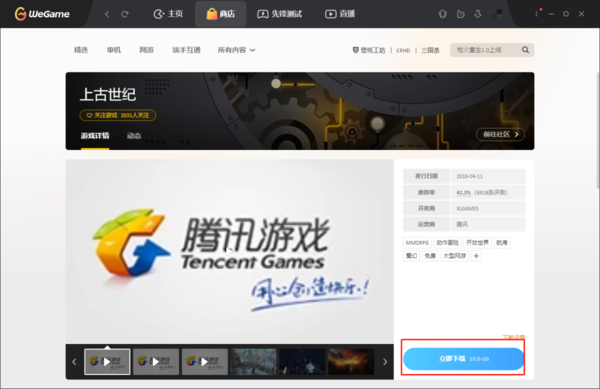 2、点击进入游戏下载页面,单机右下方“立即下载”按钮,就可开始下载,下载完成后,该游戏也自动添加到游戏列表当中了。