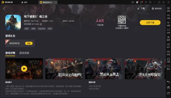 来到详情界面,我们可以看到游戏的版本、介绍、攻略、相关游戏等。当然,在界面的右上方,有“立即下载”按钮,点击后进行下载。