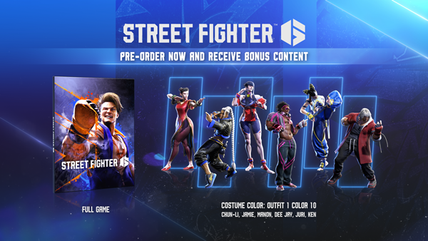 《街头霸王6(Street Fighter 6)》是一款加入了角色培养和探索元素的街头霸王系列最新作,而这作和前作一样提前购买也可以获得奖励,具体的预购奖励就是一个装扮,装扮1颜色10,春丽和杰米等等角色都能用。