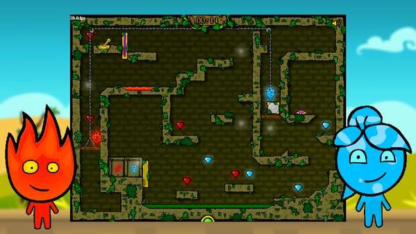 2、开始以后,冰男孩在右边,火女孩在左边,两个人分别跳到斜对面,然后通过排位。