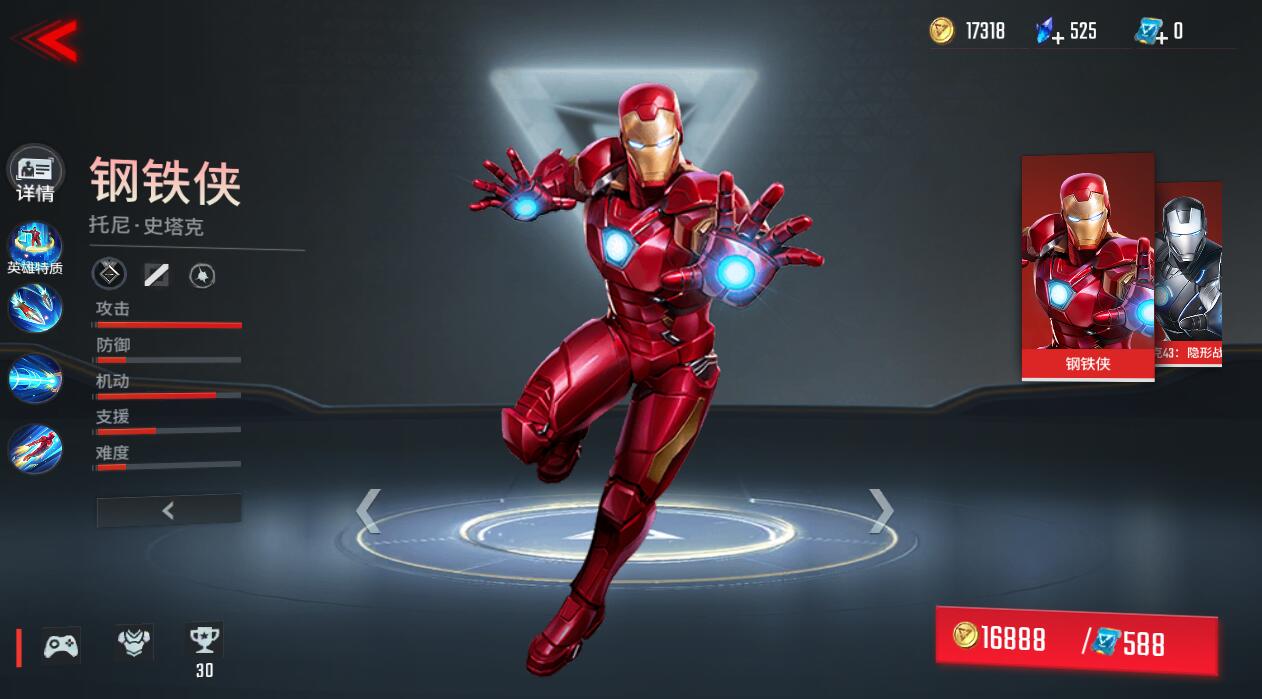 无视地形 高速移动,让钢铁侠相当灵活,技能多为AOE伤害高,前期可以快速清完线去支援,打团的时候范围伤害也是爆表,同样的操作难度较低容易上手(PS:相当于王者荣耀的嬴政。)次选冰人。