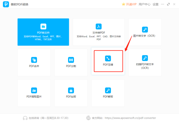 转转大师中有很多很对于PDF文件的处理功能,无论是格式转换还是压缩文件都可以用这款软件完成,我们在转转大师中可以找到PDF文件压缩的功能。