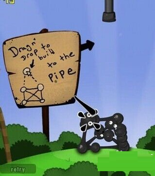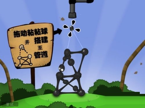3、进入后点击(左键)粘粘球,拖住往上移动的时候,会出现粘粘丝。拖住粘粘球往上走,直至粘粘丝的最末端,松开左键。