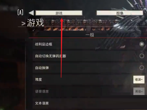 2、接着进入选项界面,点击顶部的游戏菜单。