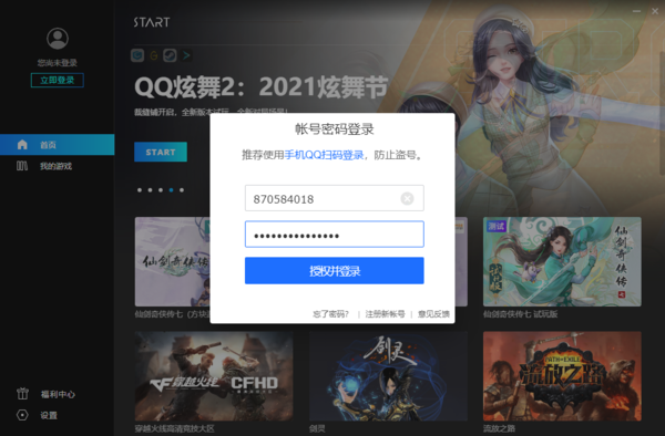 账号实名认证成功后,我们在腾讯start云游戏软件上进行QQ账号的登录,便可以开始畅玩各种热门游戏了。