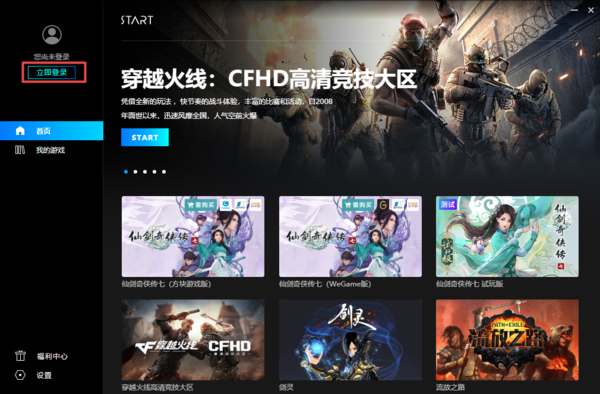 在电脑上启动安装好的腾讯start云游戏软件,然后点击界面左上角的【立即登录】按钮。接着,输入自己的QQ账号和密码来进行登录。