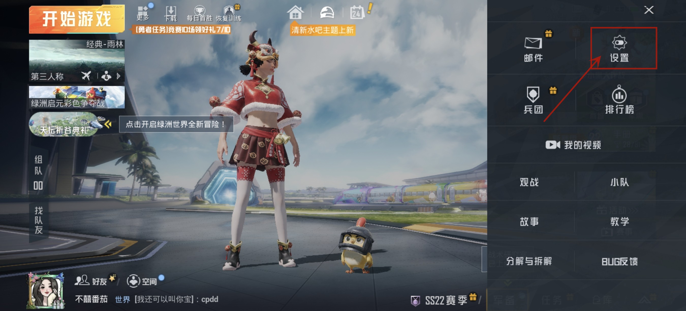 1.首先我们打开游戏,在主页的右下角找到“设置”。