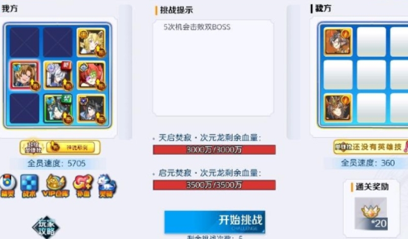 精灵选择:骑龙上阵,使用展昭赋能火牛进行挑战。火牛的增益效果与展昭的技能相结合,能够产生强大的战斗力。