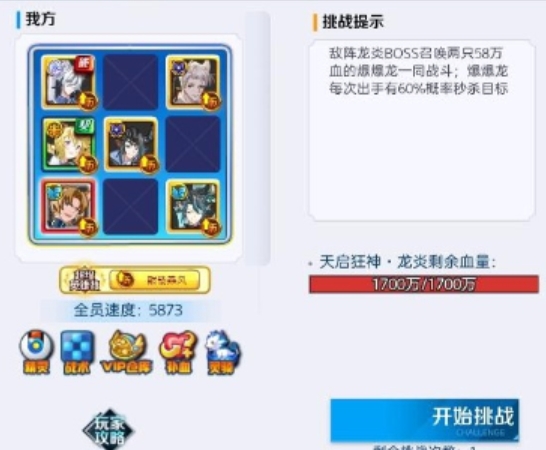 打法要点:面对启元BOSS时,骑龙能够增加队伍的整体实力。在战斗中,要注意保持与BOSS的距离,利用展昭的技能进行远程打击,同时火牛的增益效果也要及时利用,提升输出能力。